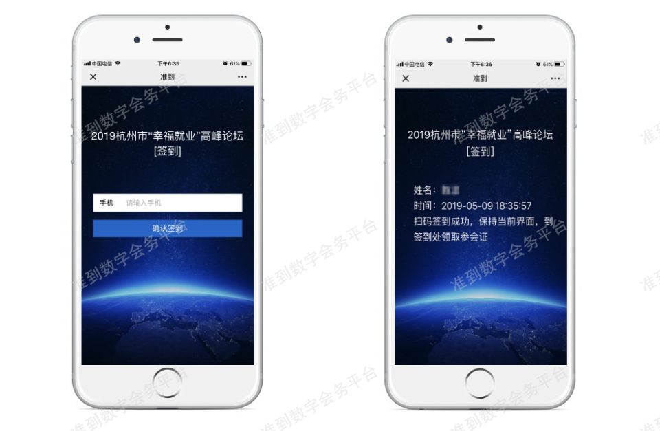 会前主办方将参会名单导入准到活动管理系统,通过系统短信平台给参会者发生参会电子二维码(整个过程仅需几分钟)。签到现场参会嘉宾出示二维码凭证,主办方通过手机或者PDA设备(预装号签到APP软件)扫描二维码完成签到,签到成功发放参会者和相关会务资料。是不是也很简单。